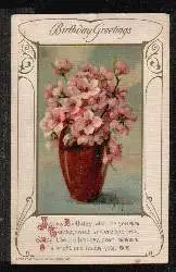 Birthday Greetings. Litho und Prägedruck. - Gelaufen. 1915. (Geburtstag, Blumen).