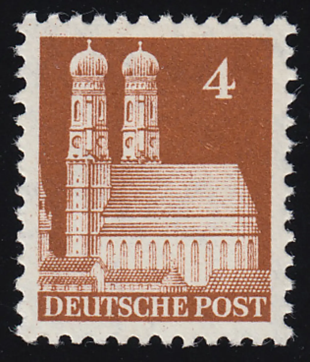 Bizone 74a XF Bauten 4 Pf., braunorange, weit **