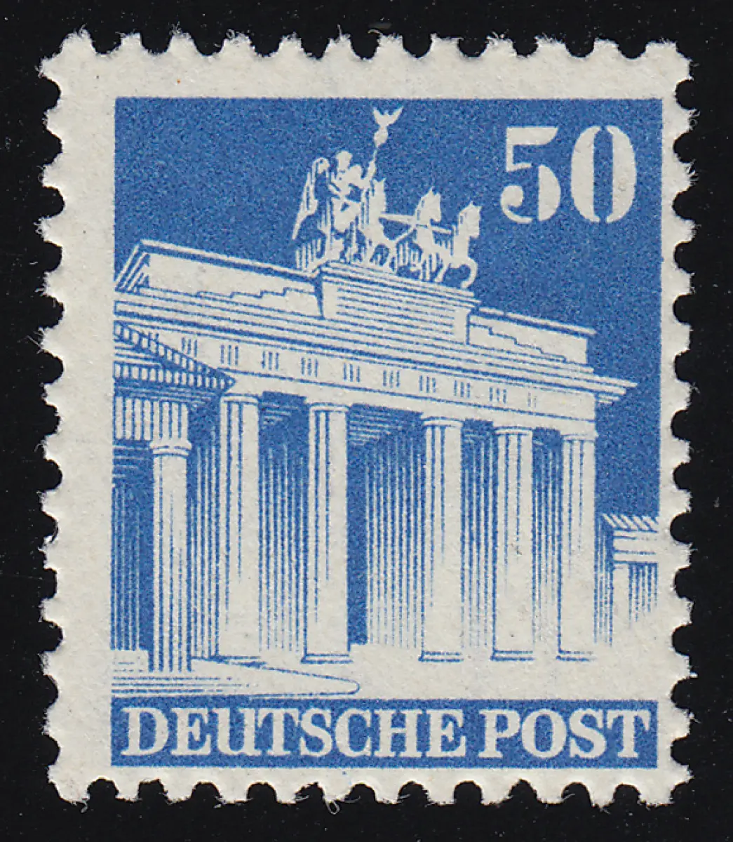 Bizone 91 XF Bauten 50 Pf., blau, weit gezähnt **