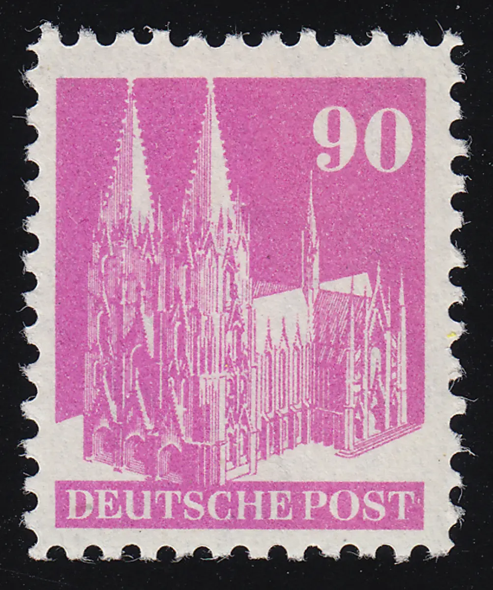 Bizone 96 I WB Bauten 90 Pf., lila, weit gezähnt **