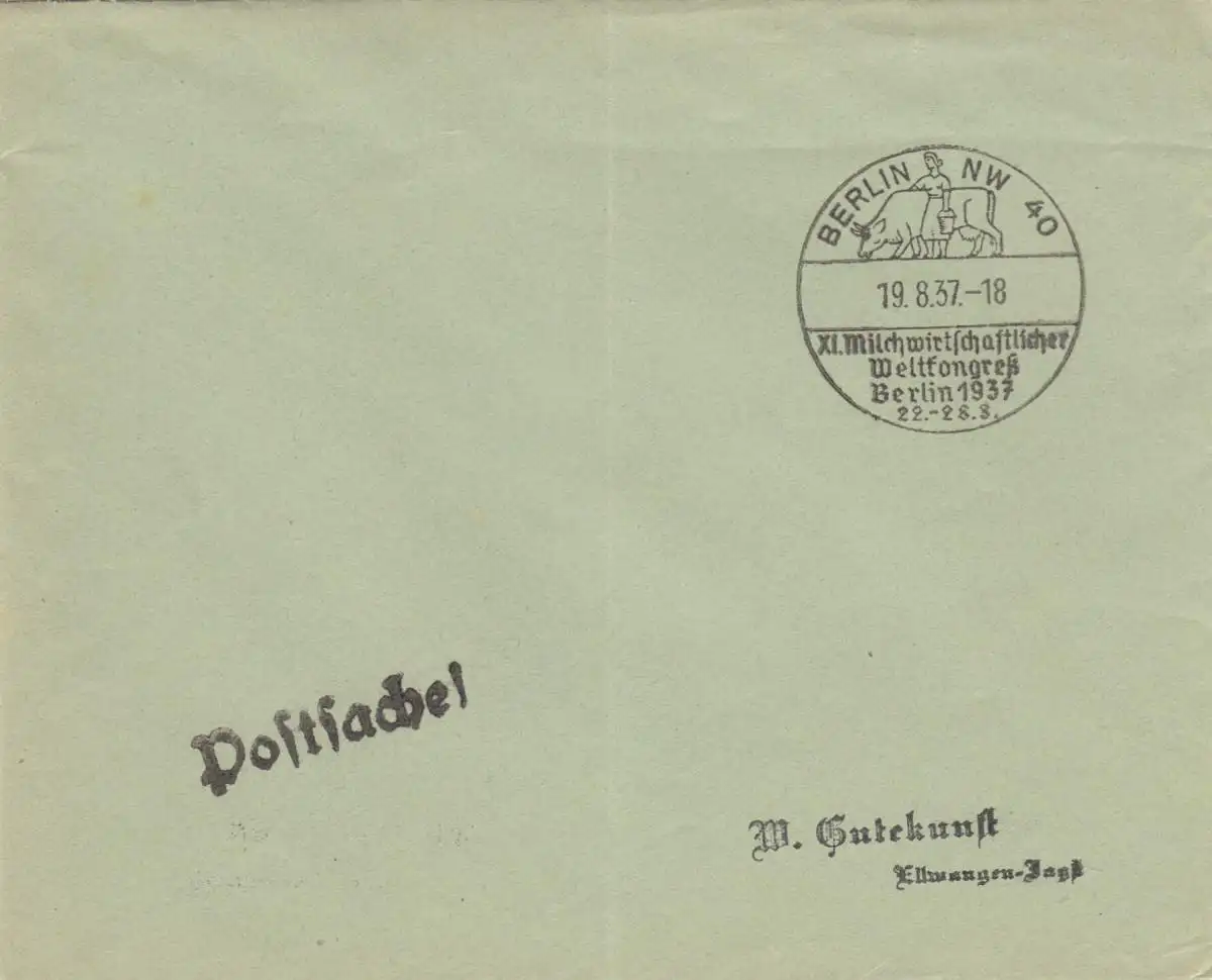 Blanko Kuvert 1937: 10. XI. Milchwirtschaftlicher Weltkongress, Berlin