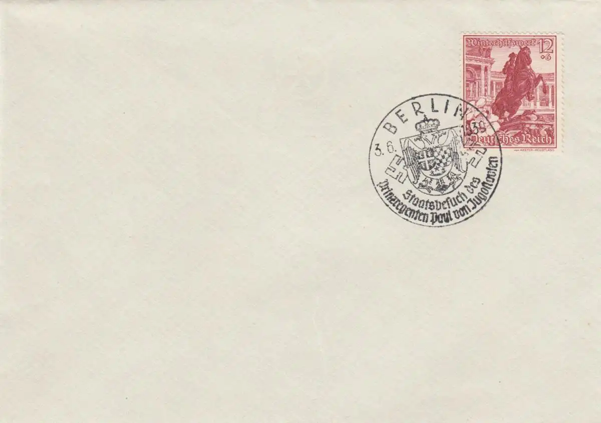 Blanko Sonderstempelbeleg 1939: Berlin: Staatsbesuch d. Prinzregenten Jugoslav.