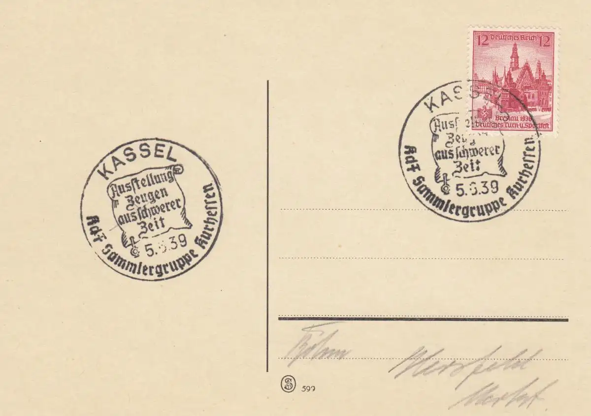 Blanko Sonderstempelbeleg 1939: Kassel: Sammlergruppe Aurhessen