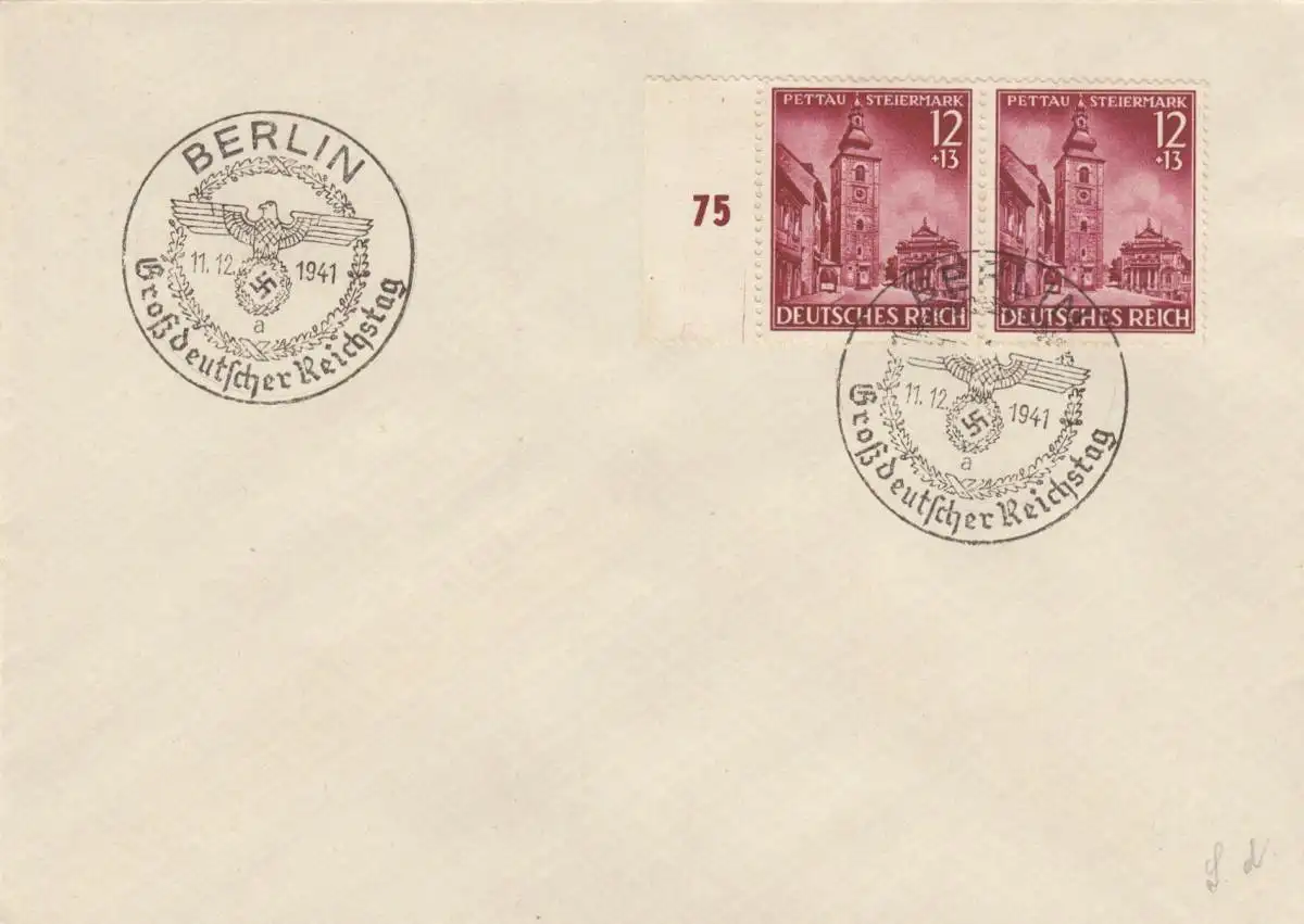 Blanko Sonderstempelbeleg 1941: Berlin: Großdeutscher Reichstag 11.12.1941