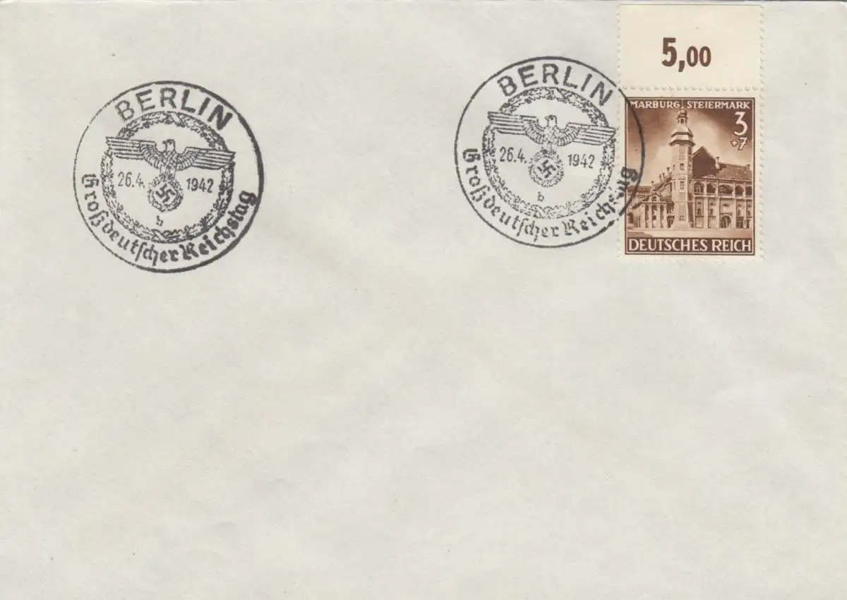 Blanko Sonderstempelbeleg 1942: Berlin: Großdeutscher Reichstag 26.4.1942