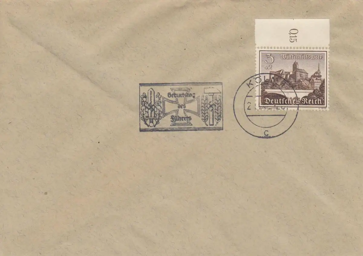 Blanko Sonderstempelbeleg: Köln: Geburtstag des Führers