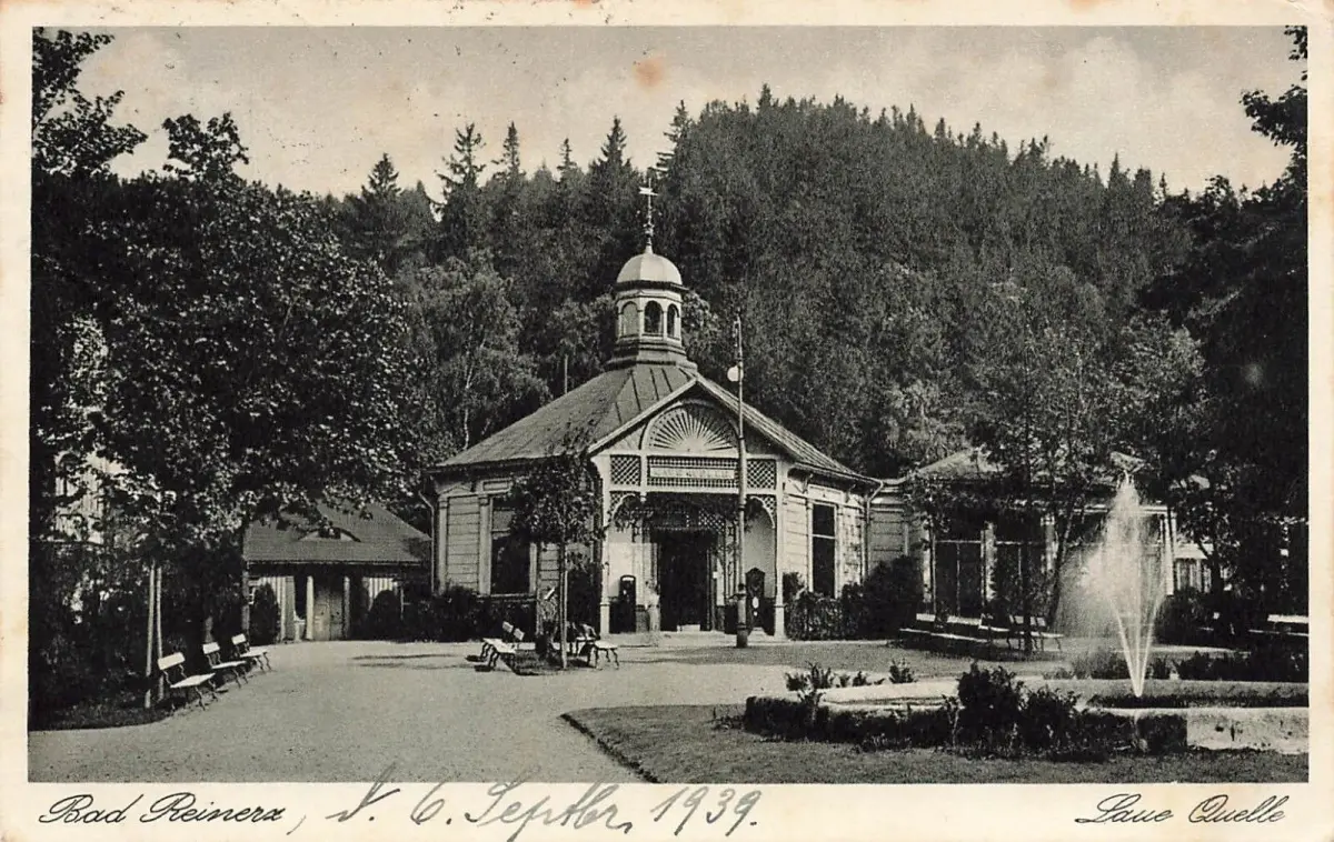 Blaue Quelle in Bad Reinerz Duszniki-Zdrój Schlesien Postkarte AK 1939