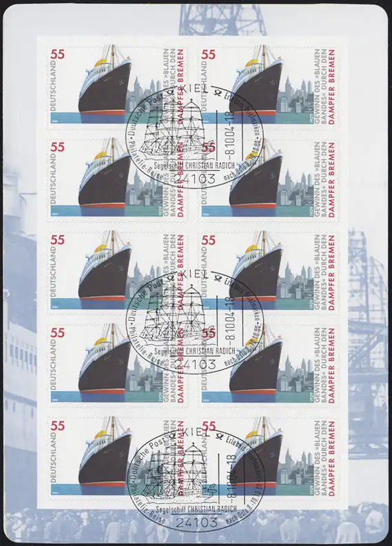 Sonderstempel 24103 KIEL Segelschiff CHRISTIAN RADICH Philatelie-Reise nach Oslo 8.10.2004