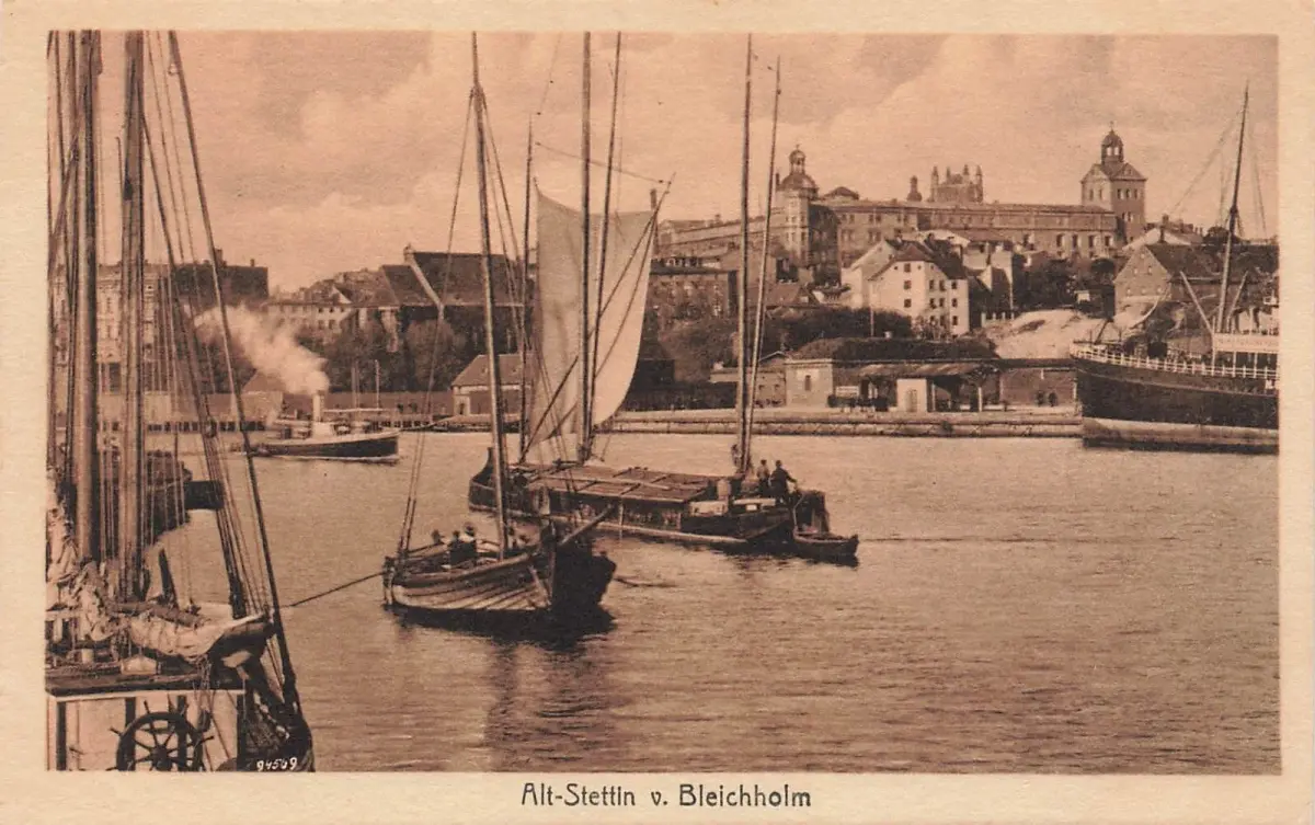 Bleichholm mit Dampfer Alt Stettin Szczecin Pommern Postkarte AK