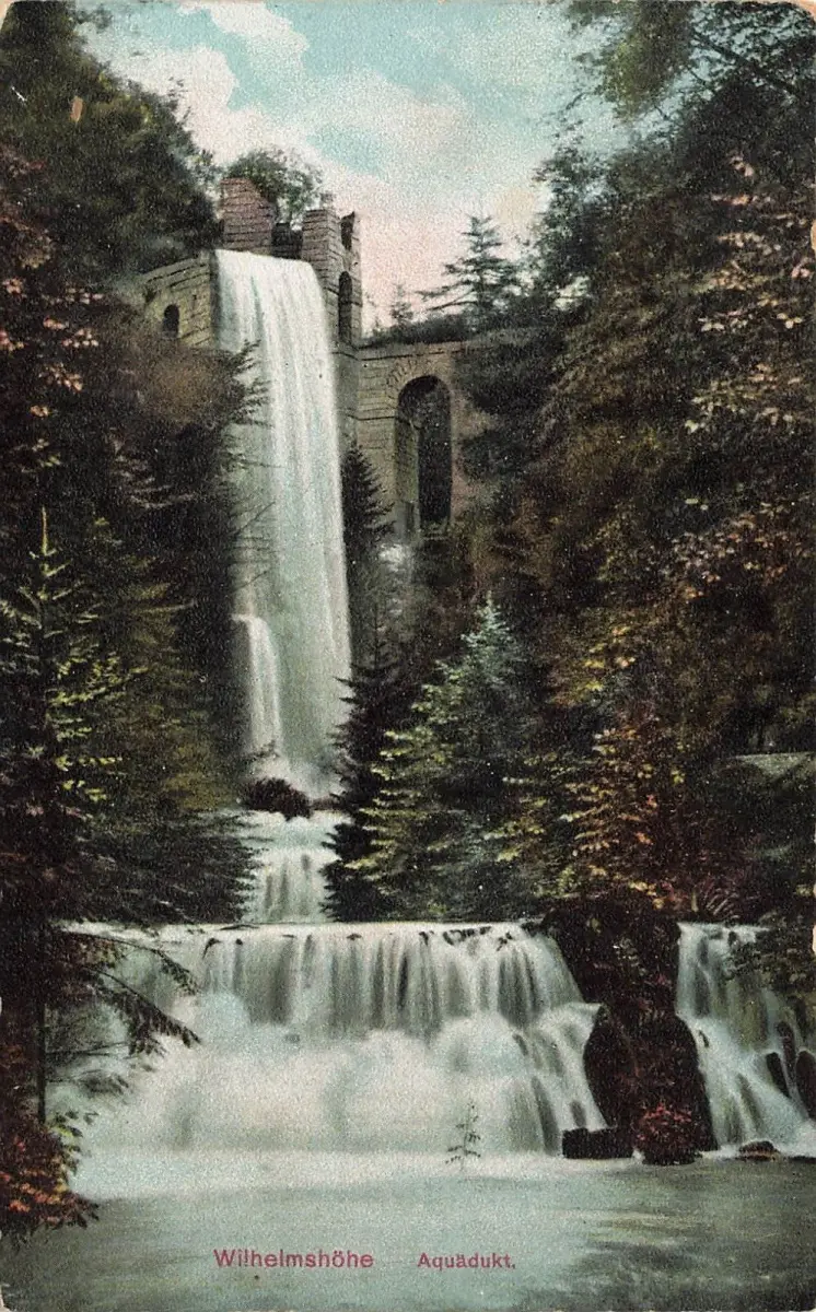 Blick auf Aquädukt mit Wasserfall Wilhelmshöhe Kassel Hessen Postkarte AK 1910