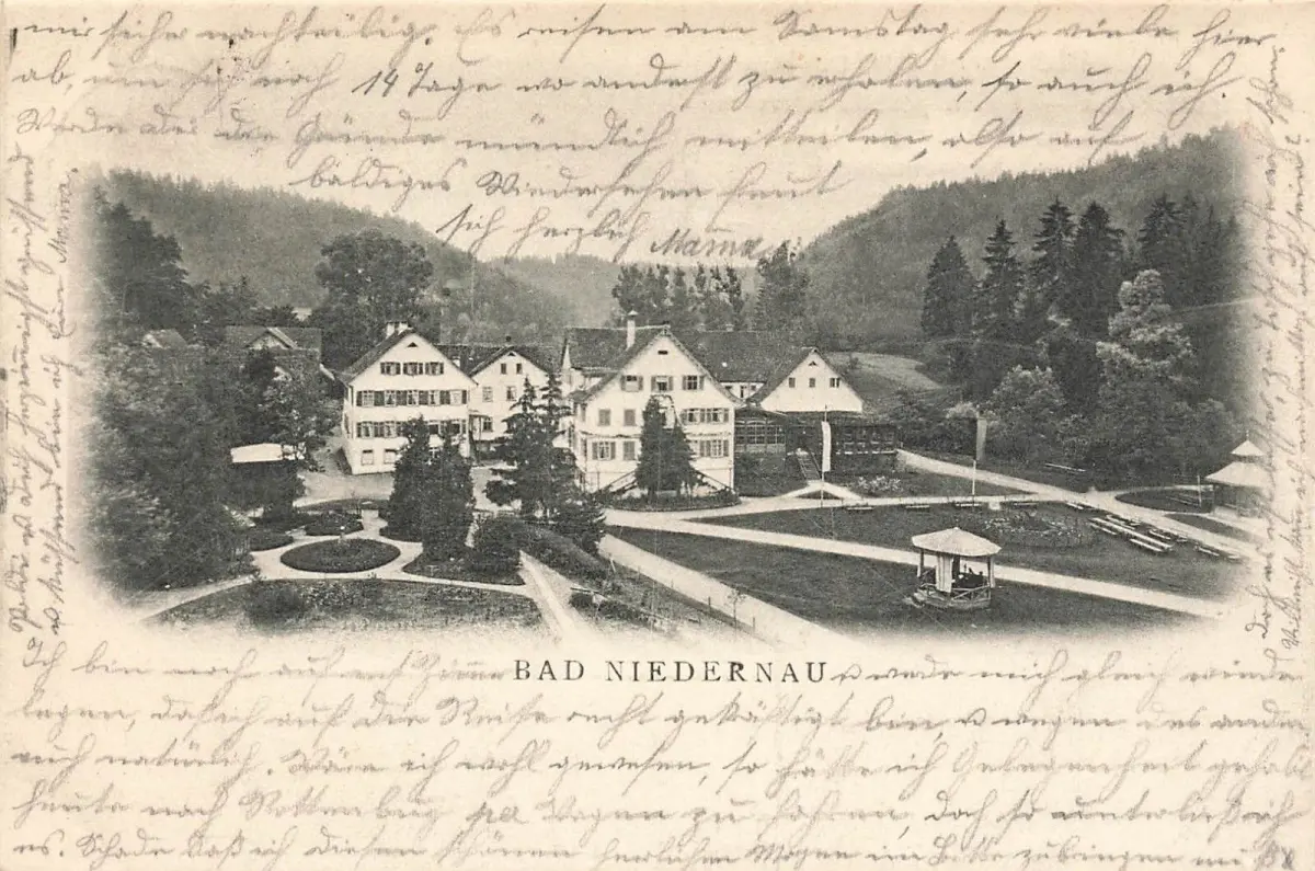 Blick auf Gasthaus mit Hof in Bad Niedernau Baden-Württemberg Postkarte AK 1905