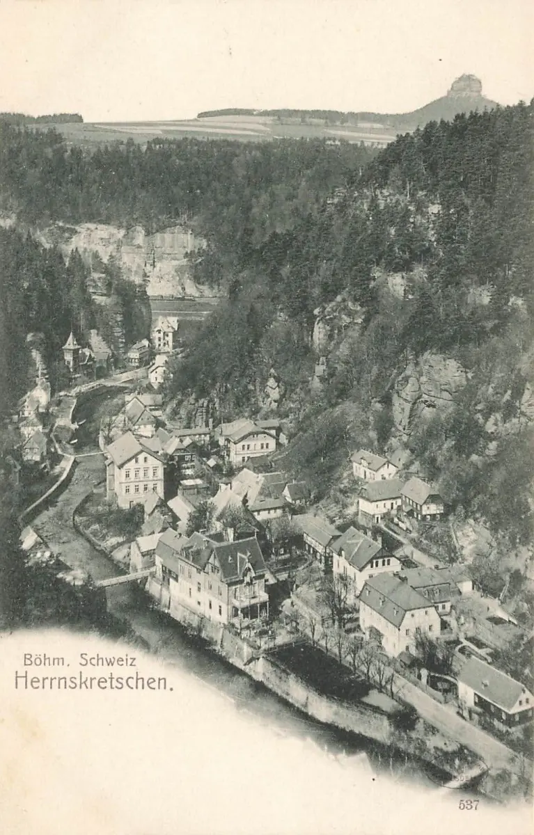 Blick auf Herrnskretschen Böhmische Schweiz Böhmen Postkarte AK