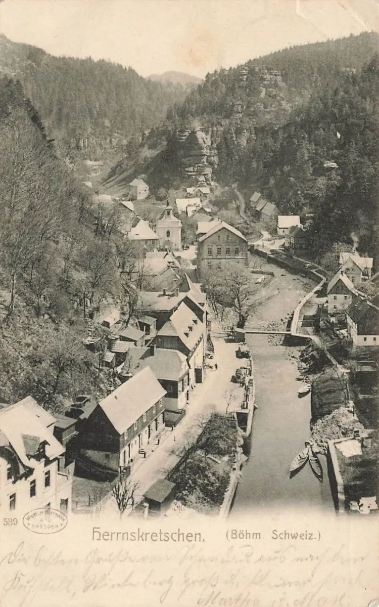 Blick auf Herrnskretschen Böhmische Schweiz Böhmen Postkarte AK 1909