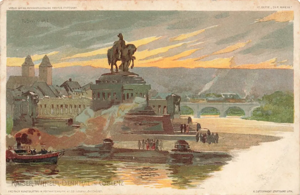 Blick auf Kaiser Wilhelm Denkmal in Coblenz Rheinland-Pfalz Postkarte AK