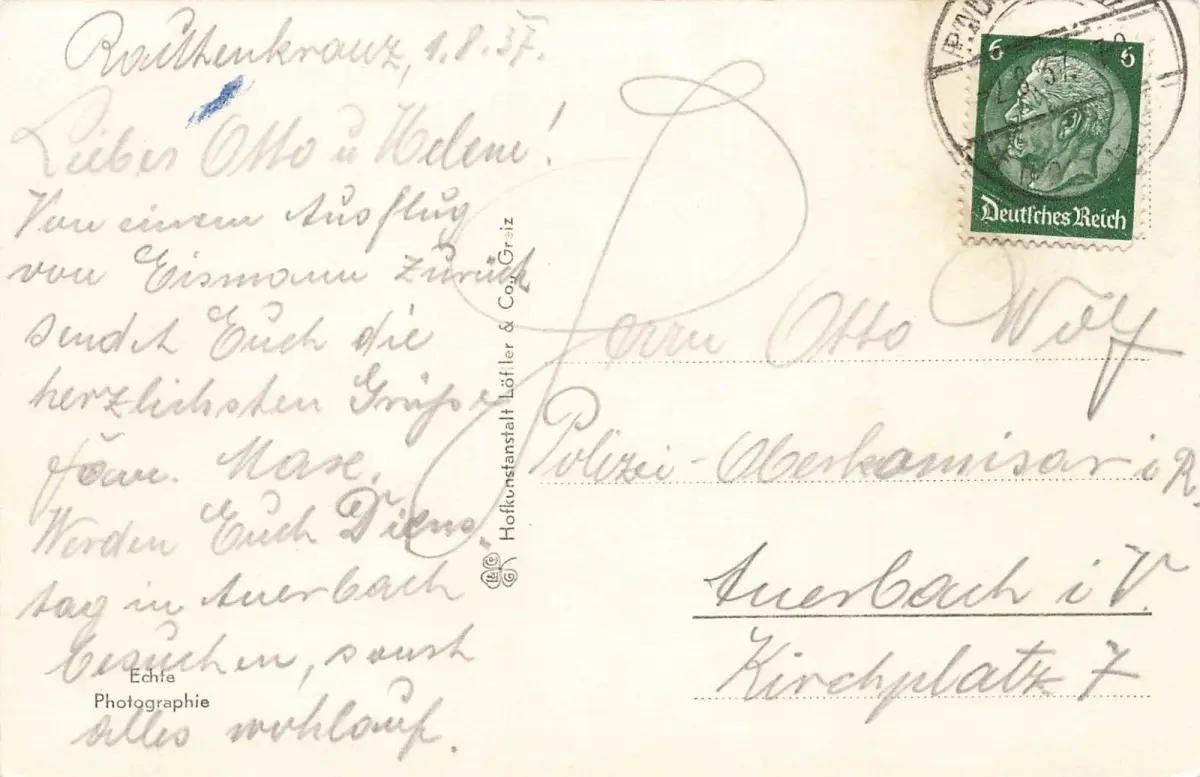 Rückseite: gelaufen 1937
