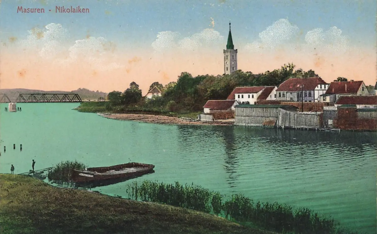 Blick auf Nikolaiken mit Kirche Masuren Ostpreussen Postkarte AK