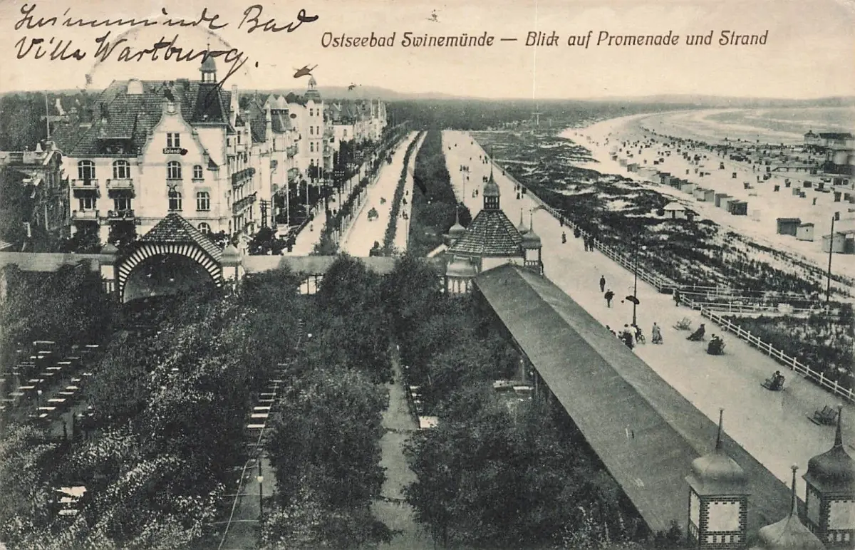 Blick auf Promenade und Strand in Swinemünde Pommern Postkarte AK 1910