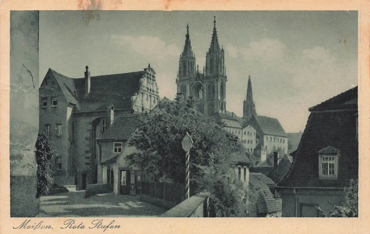 Blick auf Rote Stufen mit Kirche in Meißen Sachsen Postkarte AK
