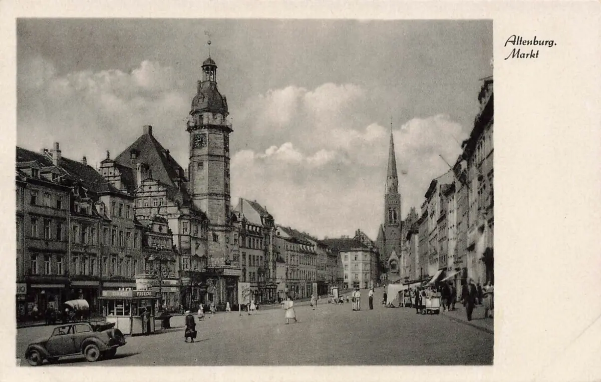 Blick auf den Markt mit Kirche in Altenburg Thüringen Postkarten AK