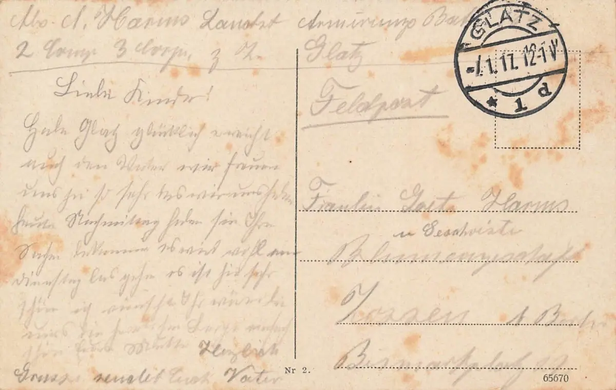 Rückseite: gelaufen 1917