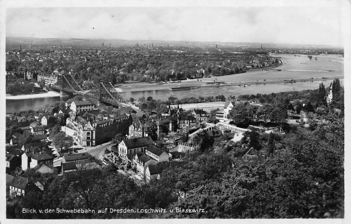 Blick v. der Schwebebahn auf Dresden, Loschwitz und Blasewitz AK 1932