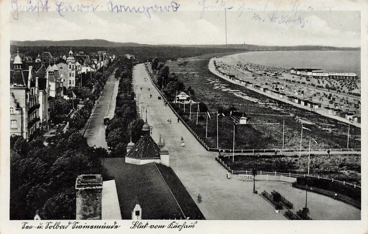 Blick vom Kurhaus auf Swinemünde Pommern Postkarte AK 1938