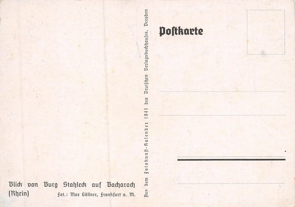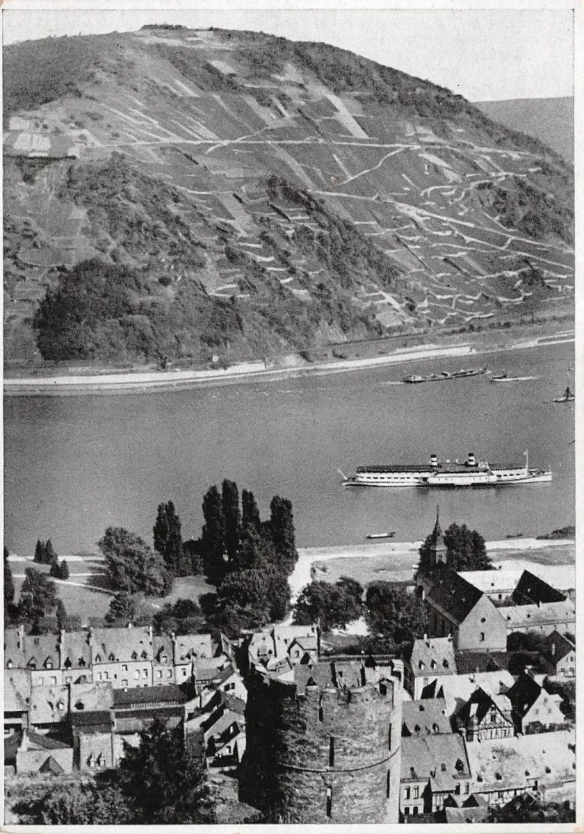 Blick von Burg Stahleck auf Bacharach (Rhein) Postkarte AK