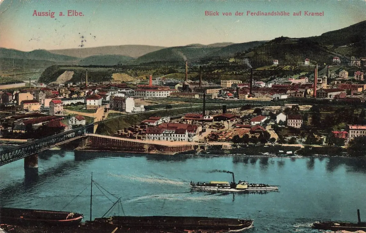Blick von Ferdinandshöhe auf Kramel mit Dampfer Aussig Böhmen Postkarte AK 1912