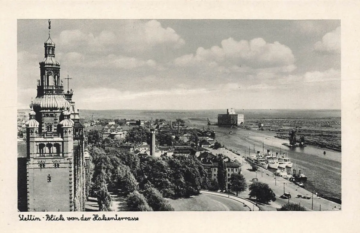 Blick von der Hakenterrasse auf Stettin Pommern Postkarte AK