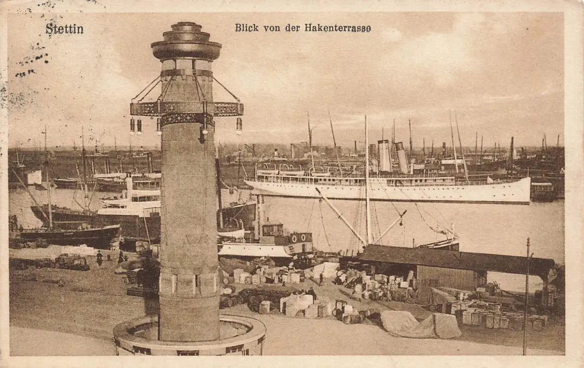 Blick von der Hakenterrasse mit Dampfschiff in Stettin Pommern Postkarte AK 1929