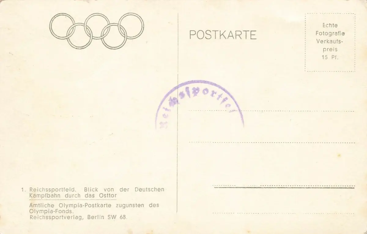 Blick von der Kampfbahn durch das Osttor auf das Reichssportfeld Berlin AK