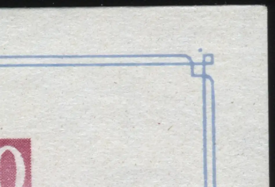 Plattenfehler III in Type 1: Punkt oben rechts nah über dem Rahmen-Ornament