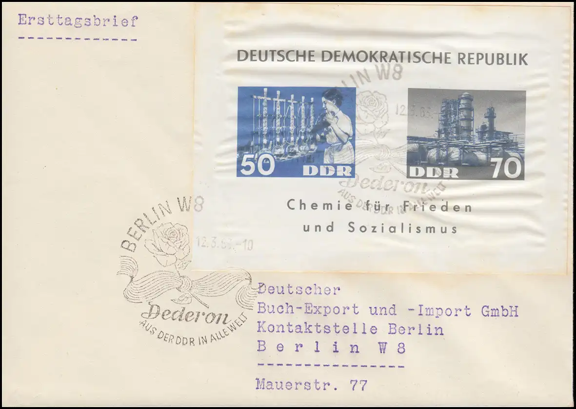 Block 18 Chemische Industrie Dederon-Block, FDC Buch-Export ESSt BERLIN 12.3.63