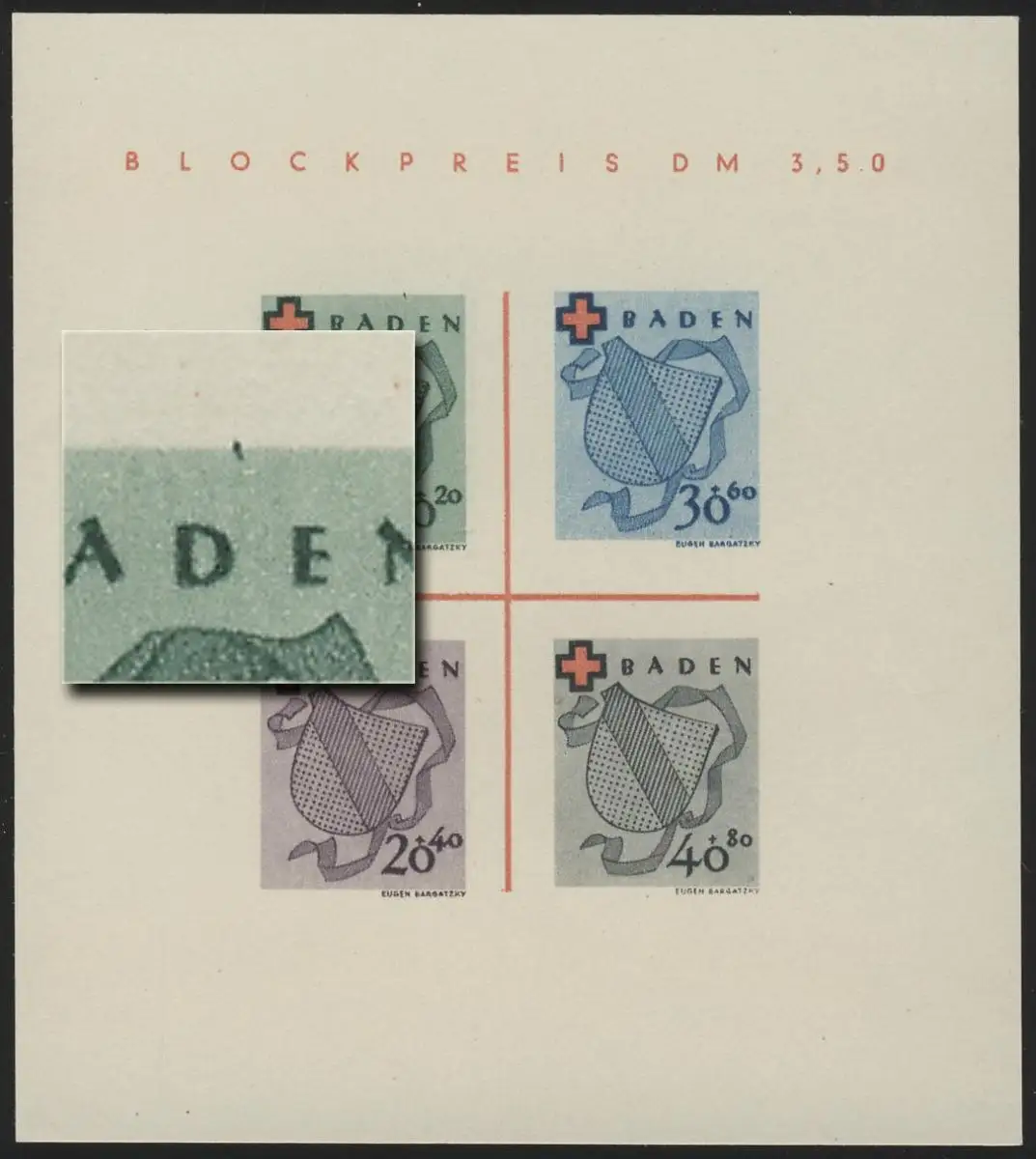Block 2 Baden Rotes Kreuz Type I/III (*) original wie verausgabt