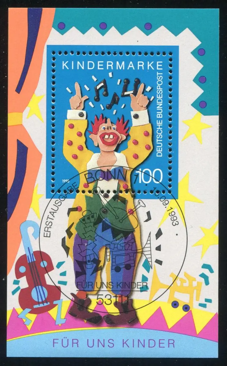 Block 27 Für uns Kinder 1993 mit PLF schwarzer Fleck im Haarzipfel, ESSt BONN