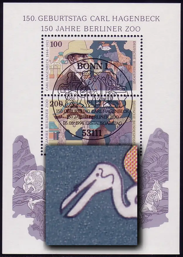 Block 28I Hagenbeck, Block mit PLF I Fleck im Schnabel, ESSt Bonn