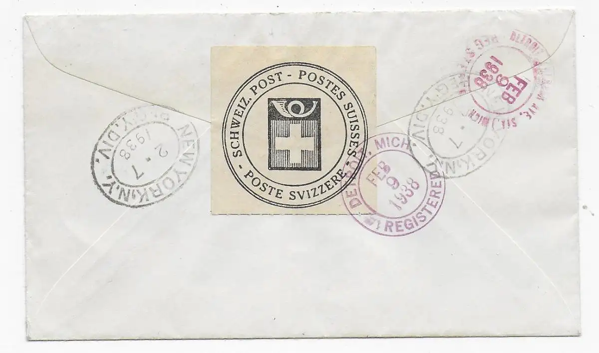 Block 3, 1938 Einschreiben Zürich nach Detroit/Mich USA