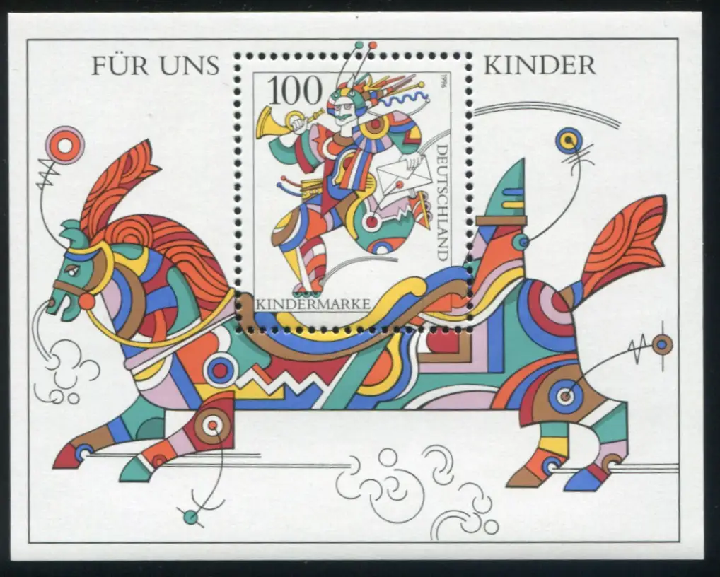 Plattenfehler senkrechte Striche auf der Marke unten rechts, auf den Block übergehend