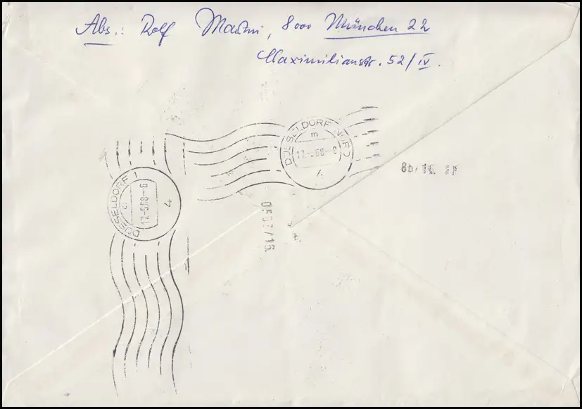 Eil-Brief mit Berlin 303+305 und mit Ankunftsstempel DÜSSELDORF 17.5.68, Bedarfserhaltung laut Abbildung