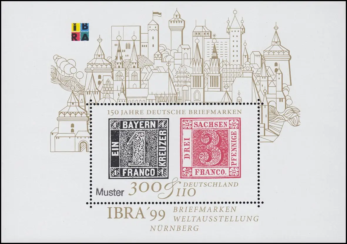 Block 46 Briefmarkenausstellung IBRA Nürnberg 1999, Muster-Aufdruck