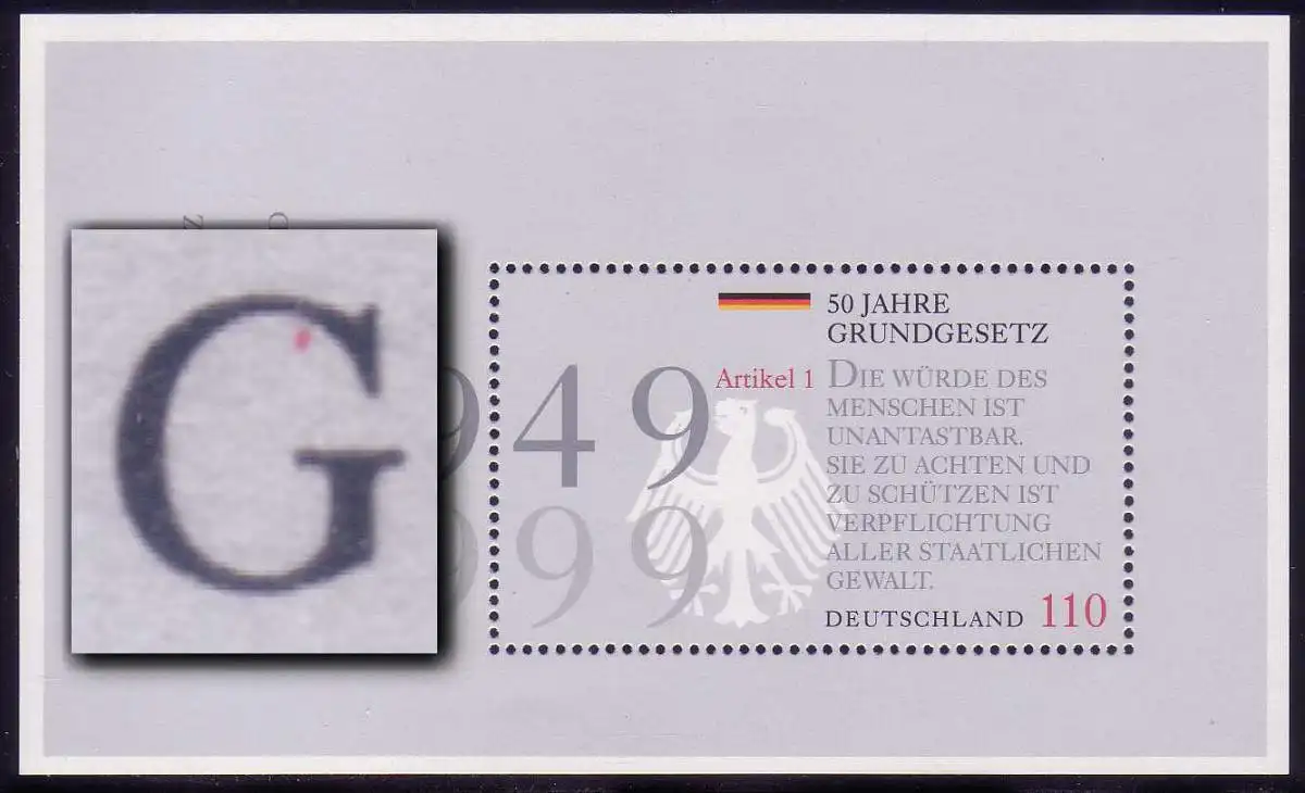 Block 48 Grundgesetz 1999 mit PLF roter Fleck im ersten G von GRUNDGESETZ, **