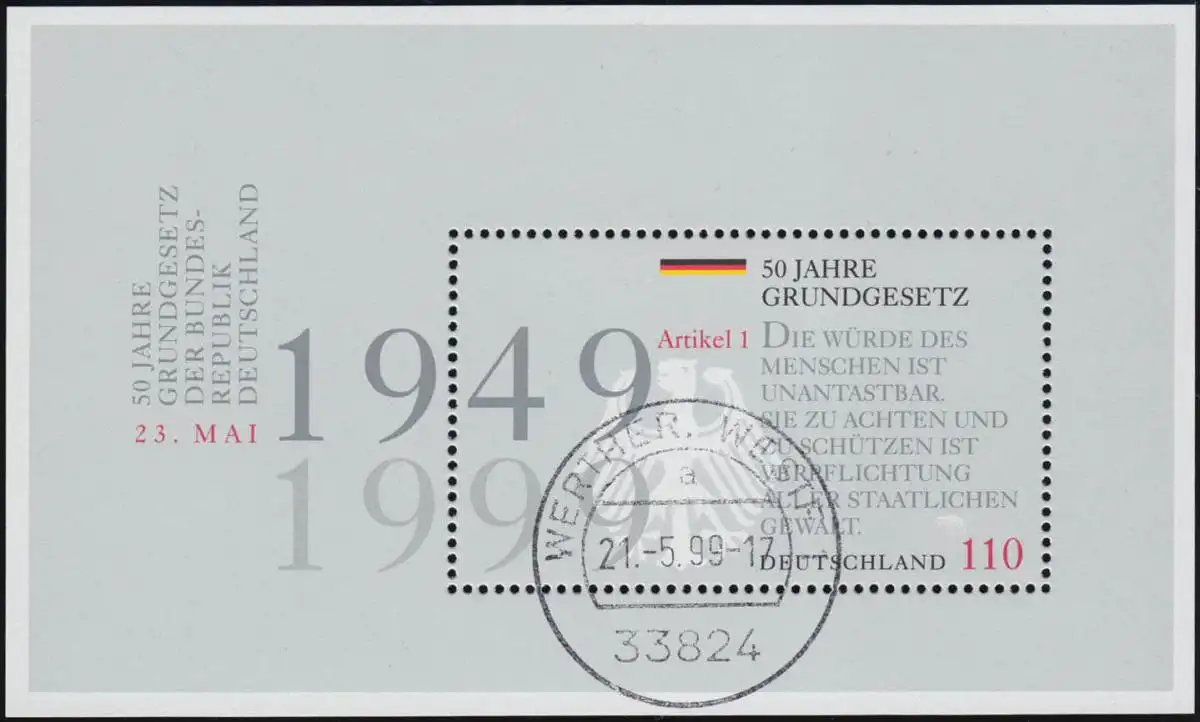 Block 48 Grundgesetz - schöner MDF Wolke über Wertangabe, ET-O WERTHER 21.5.99