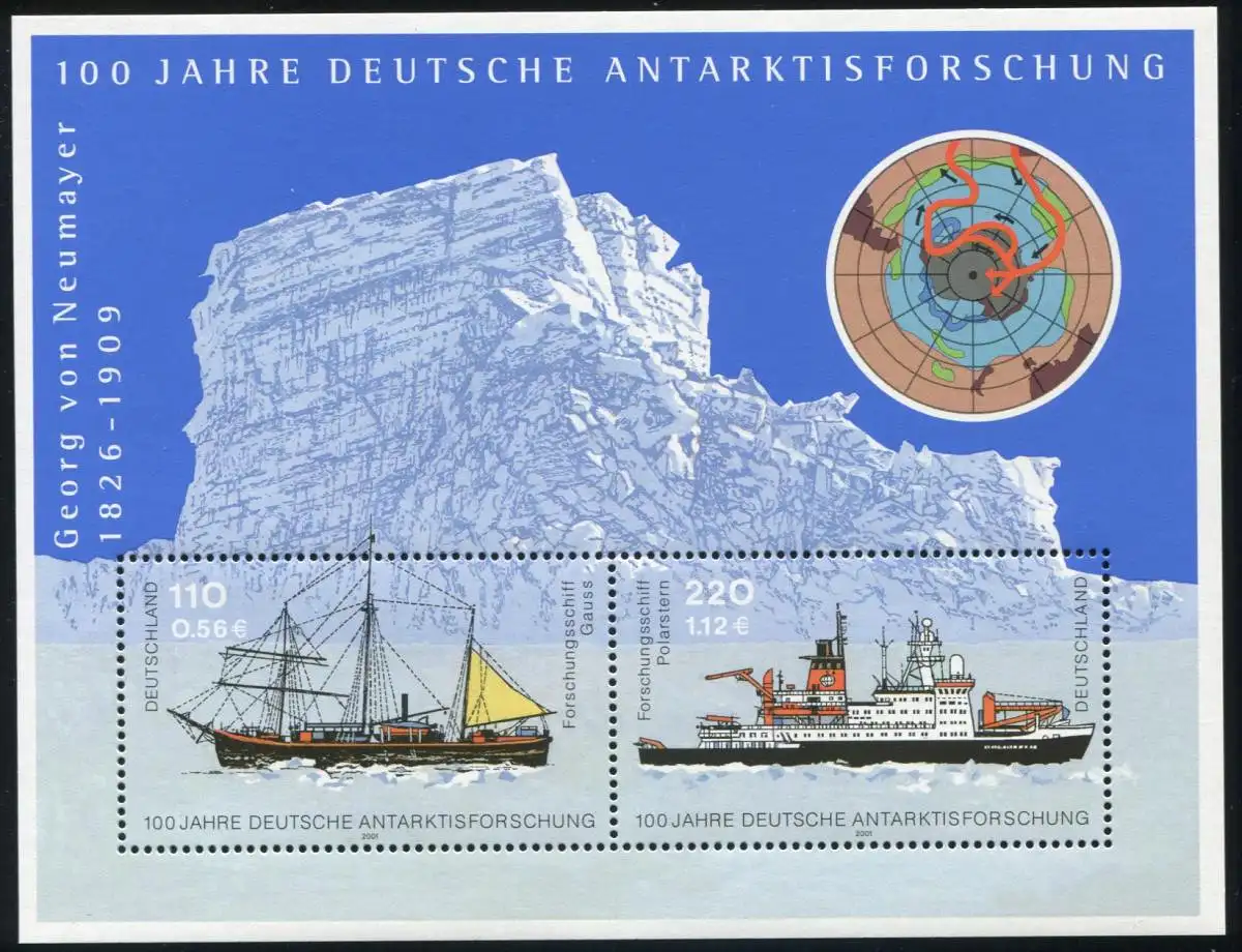 Block 57 Antarktis 2001 Retusche des PLF Fleck im Mast auf MICHEL 2229, **