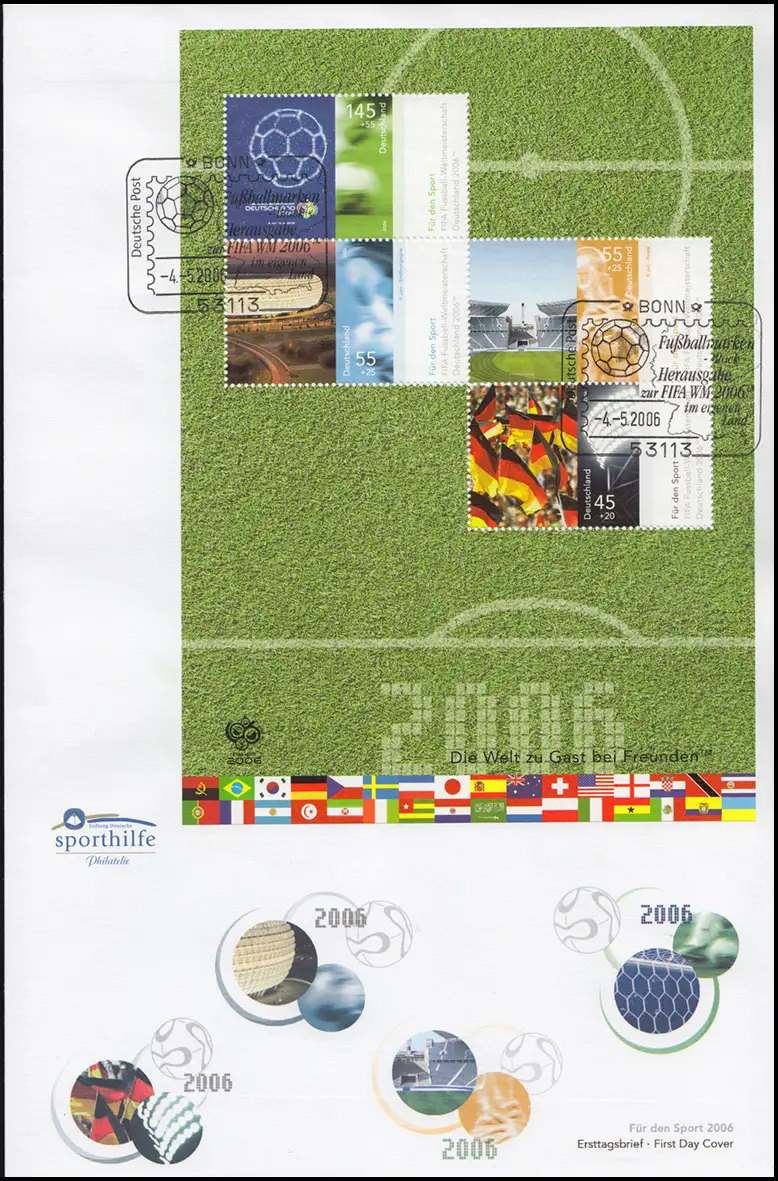 Block 67 Fußball-WM Deutschland 2006 auf Schmuck-FDC ESSt Bonn 4.5.2006