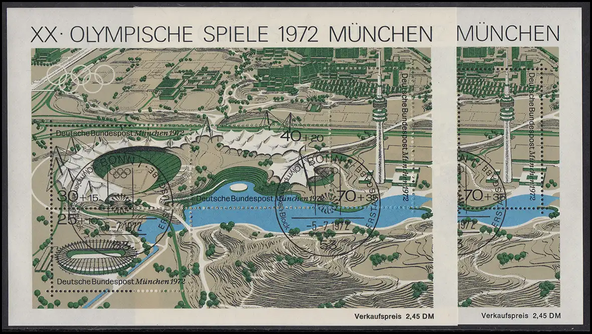 Block 7 Olympiastadion München - Schmitz-Druck, mit Vergleichsstück, beide ESSt
