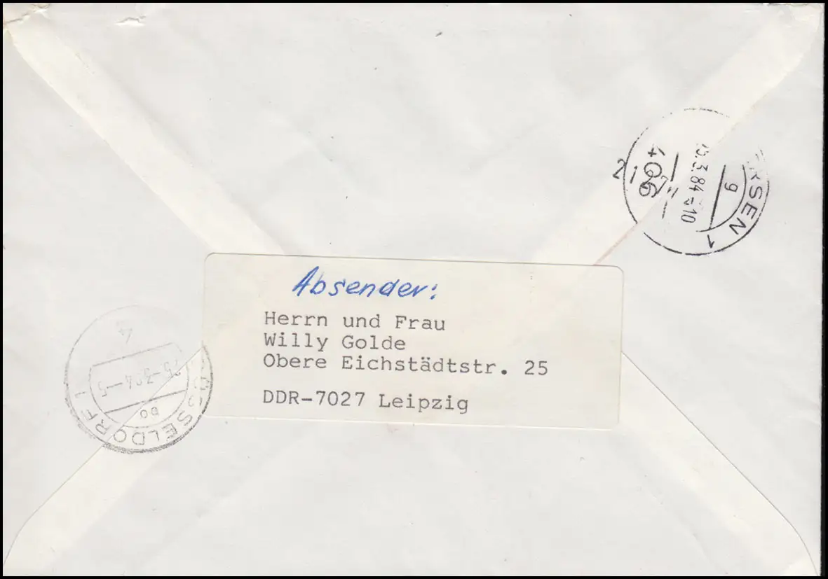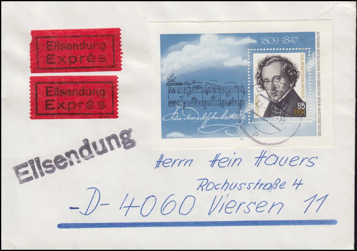 Block 76 Komponist Bartholdy als EF auf Eilsendung LEIPZIG 23.3.84 nach Viersen