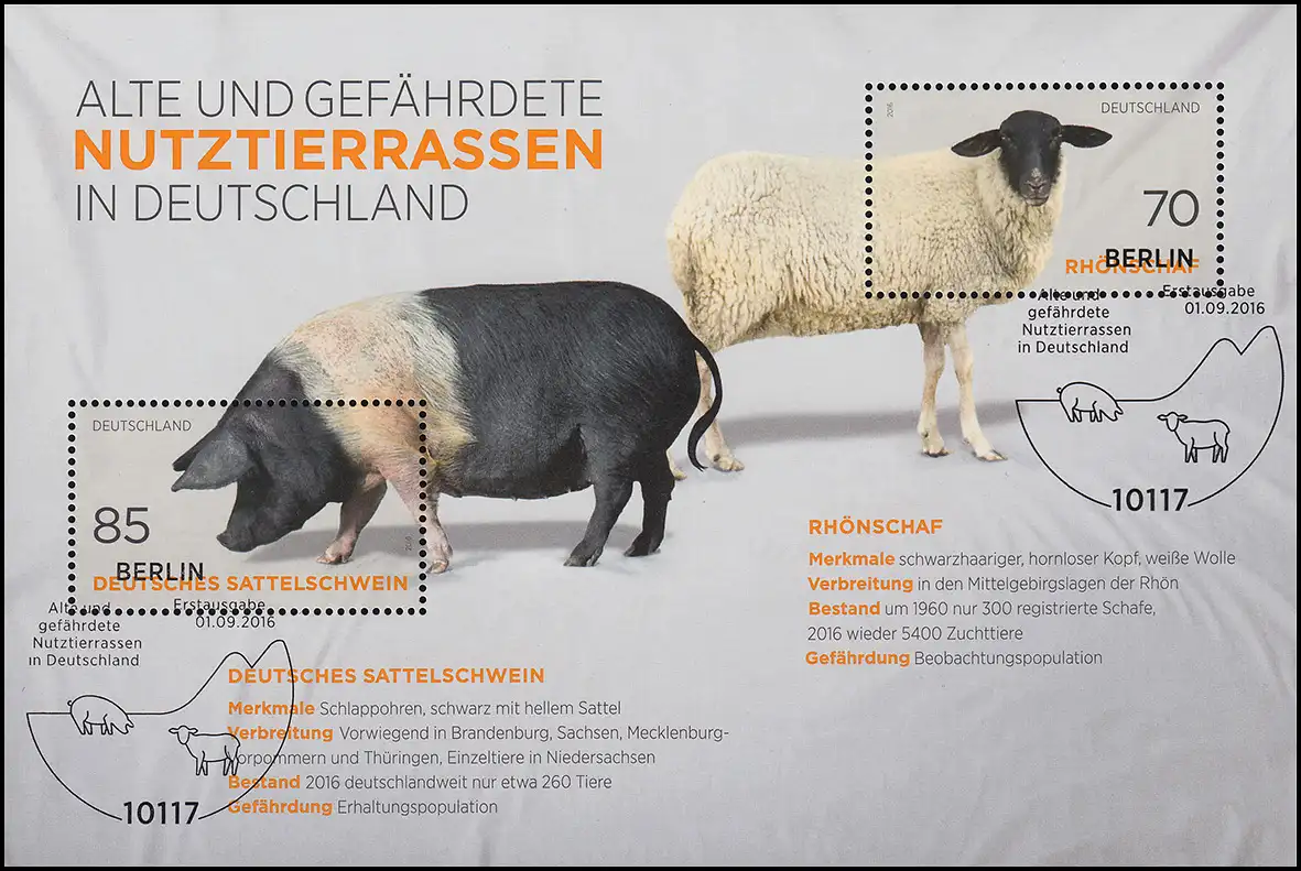 Block 81 Nutztierrassen: Rhönschaf und Deutsches Sattelschwein ESSt Berlin
