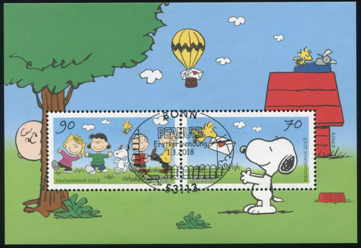 Block 82 Snoopy und die Peanuts-Rasselbande, Erstverwendungsstempel BONN 1.3.18