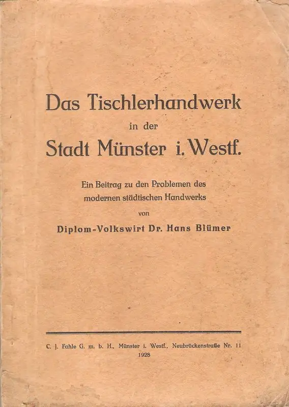 Blümer, Hans: Das Tischlerhandwerk in der Stadt Münster i. Westfalen. Ein Beitrag zu den Problemen des modernen städtischen Handwerks. (Dissertation).