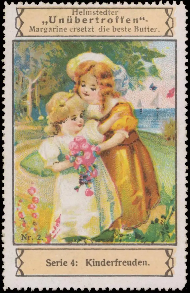 Helmstedter Unübertroffen Margarine ersetzt die beste Butter, Größe/Zustand: 7x5 , guter Zustand, Original alte Reklamemarke die seinerzeit für die Werbung benutzt wurde
